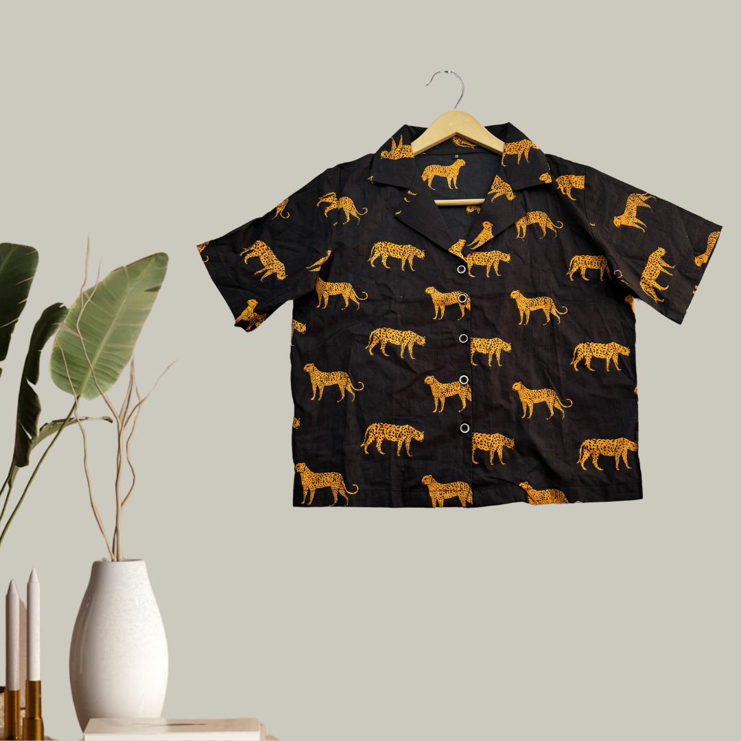 In the twilight of fashion, where boldness meets elegance, behold the enigmatic allure of the black cheetah print shirt.