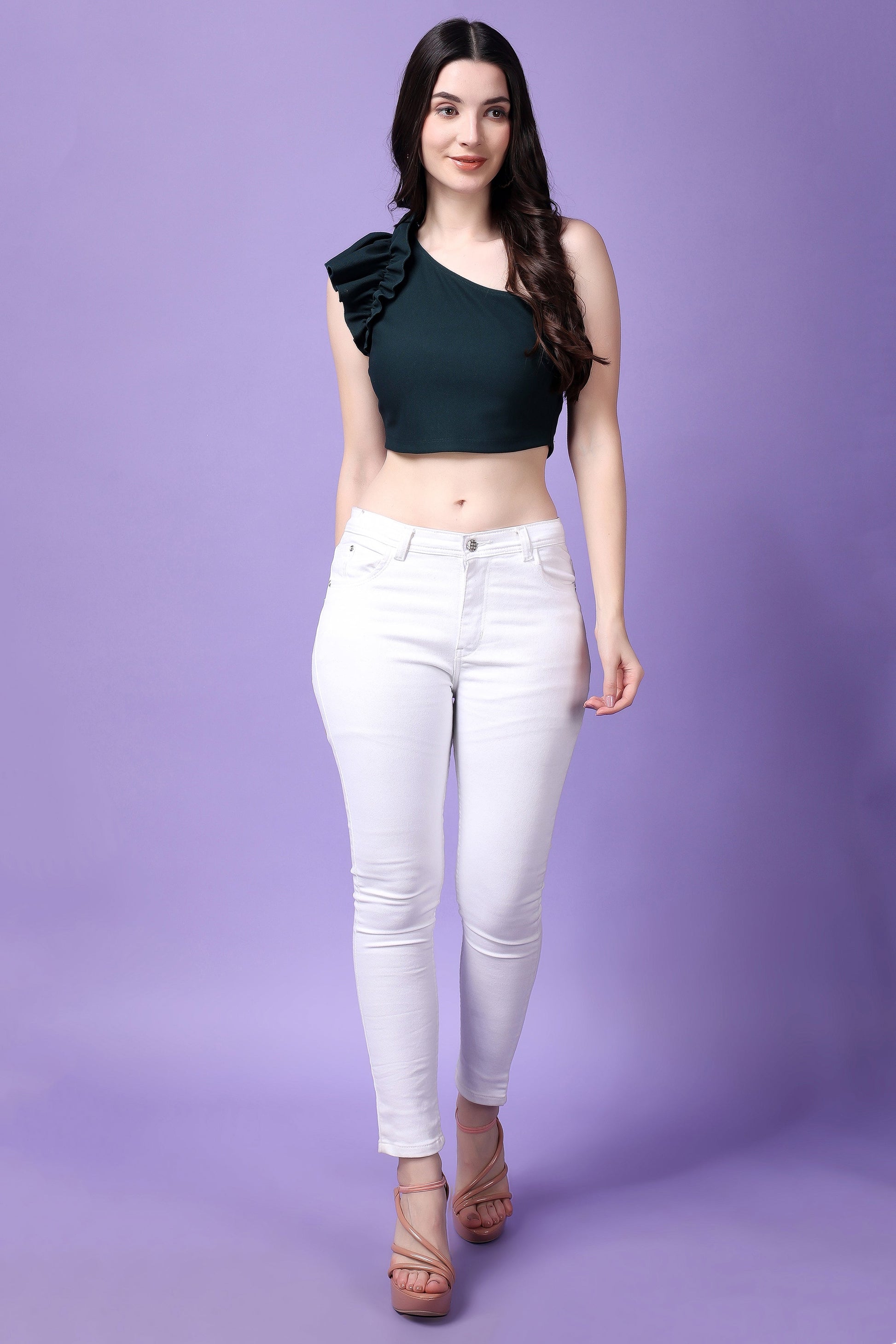"Step into the spotlight with our chic one-shoulder cotton twill top, where modern sophistication meets timeless allure. With its sleek silhouette and bold asymmetry, this piece exudes an air of understated elegance, perfect for commanding attention at any soirée or brunch affair. Crafted from sumptuously soft twill fabric, it drapes gracefully over your curves, offering both comfort and style in equal measure. Whether paired with tailored trousers for a polished look or with distressed denim for an edgy vibe, this versatile top is a must-have addition to your wardrobe, promising effortless sophistication with every wear."