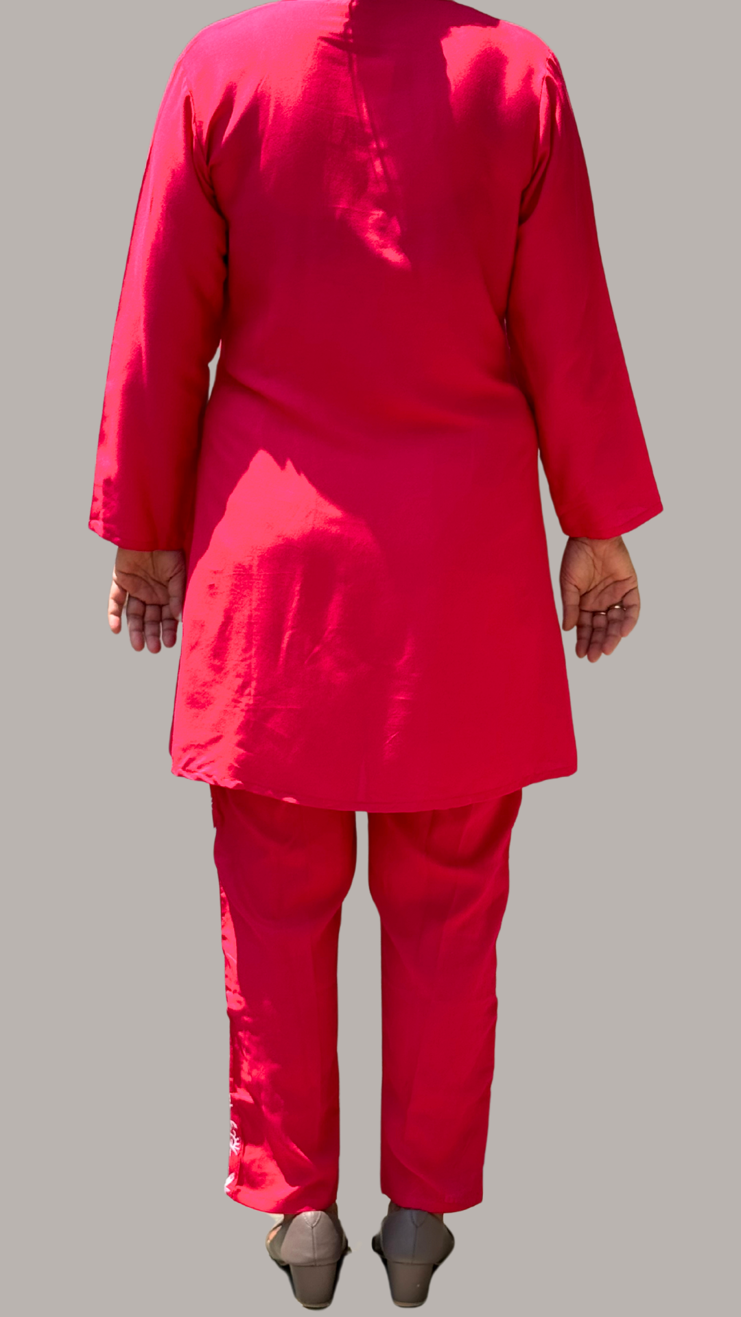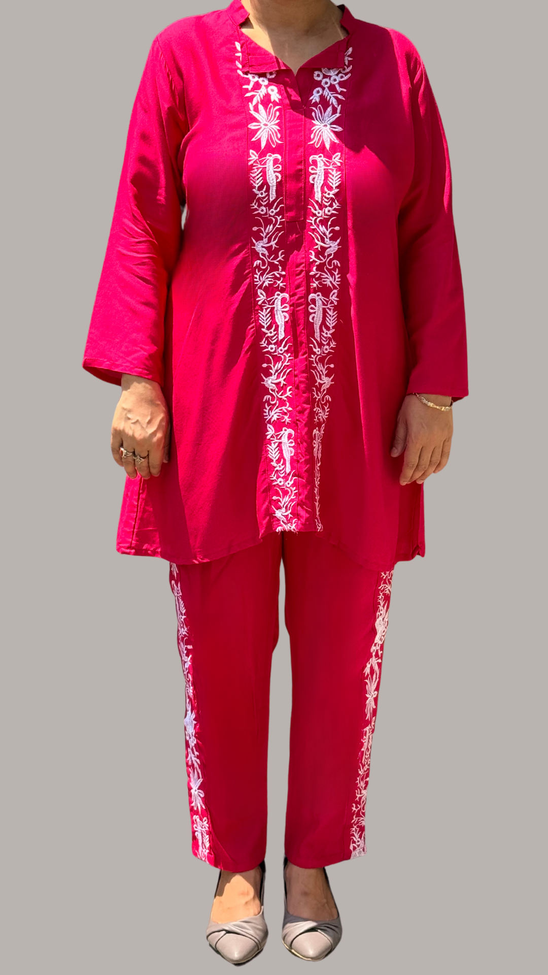 Embrace the enchanting allure of blossoms with our Pink Petal Embrace Co-ord Set. Each delicate stitch and motif is a testament to elegance and femininity, infusing your ensemble with the timeless charm of floral grace. With its soft hues and intricate embroidery, this set invites you to dance through fields of romance and whimsy. Let the gentle sway of the fabric and the subtle blush of pink envelop you in a sensation of ethereal beauty, as you make a statement that is both bold and delicate. Whether gracing a garden party or captivating the city streets, let this ensemble be your symbol of effortless sophistication and floral enchantment