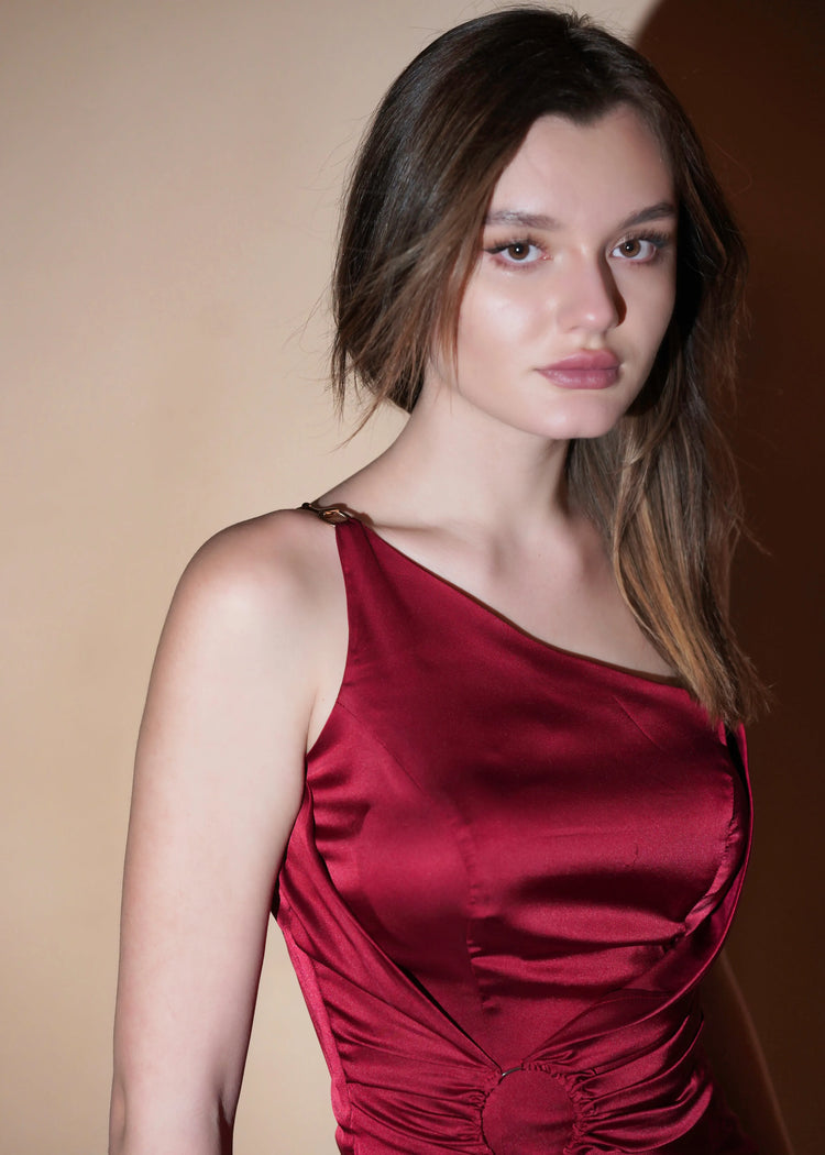 Elegant Maroon Sleek Satin One Shoulder Dress