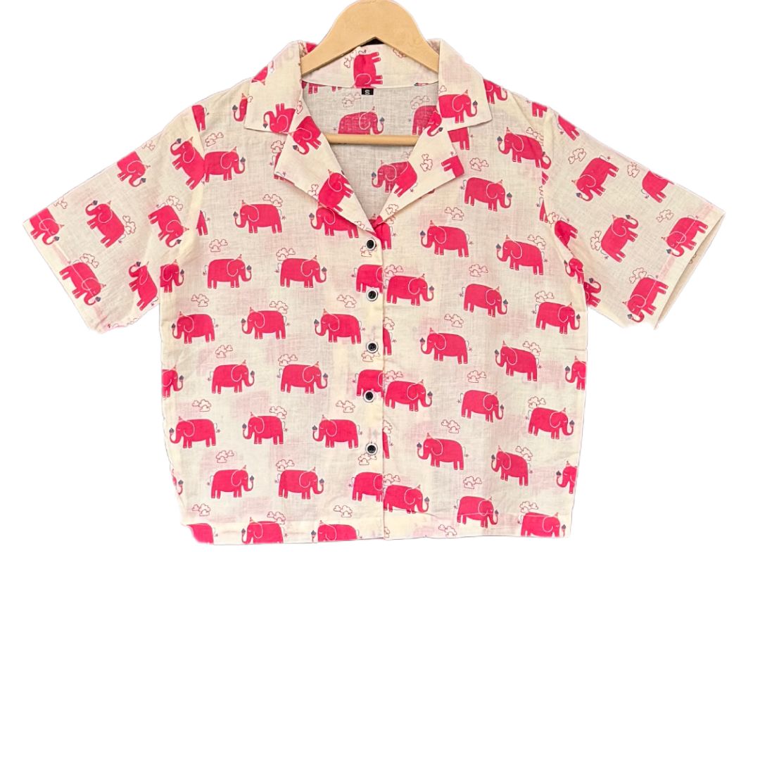 In the realm of fashion, where imagination paints the canvas of style, behold the captivating allure of the cream elephant print shirt. Pair it with denim jeans for a casual look or trouser while going to office.