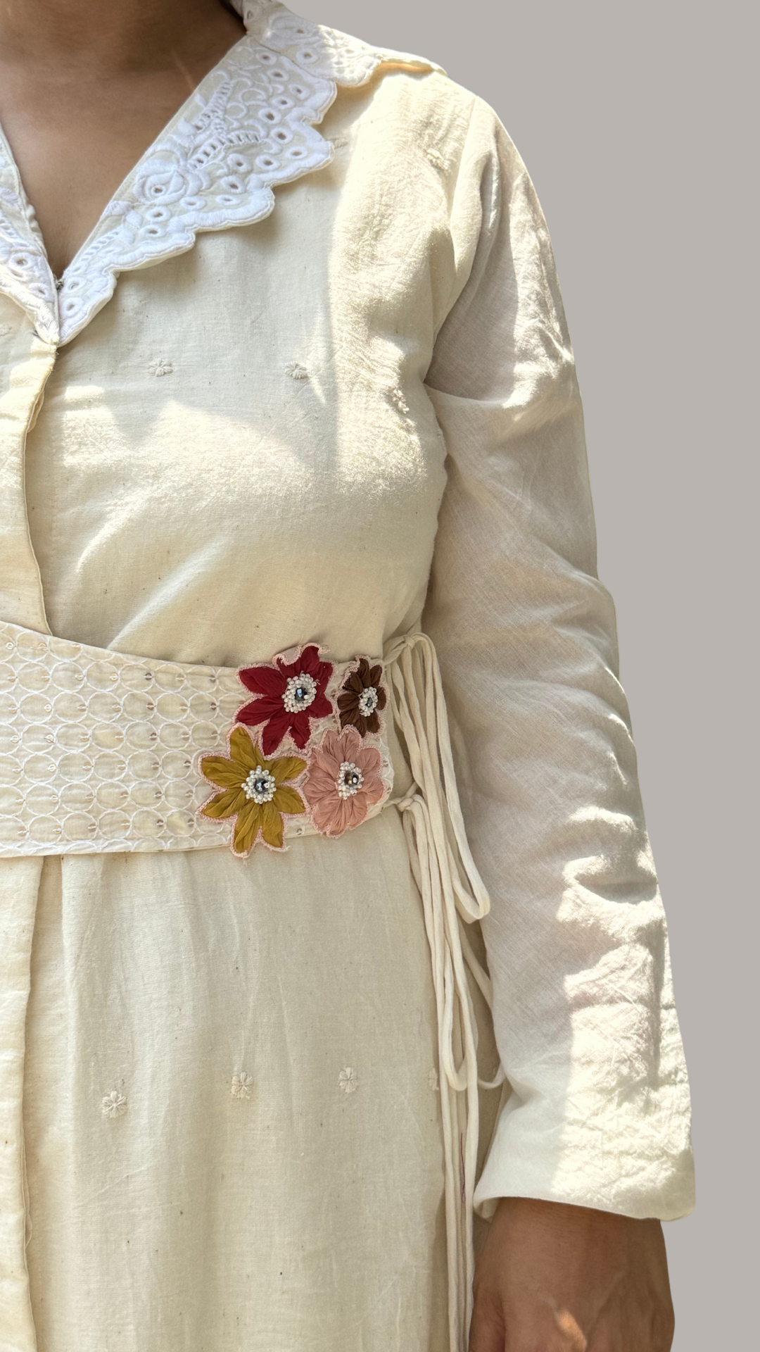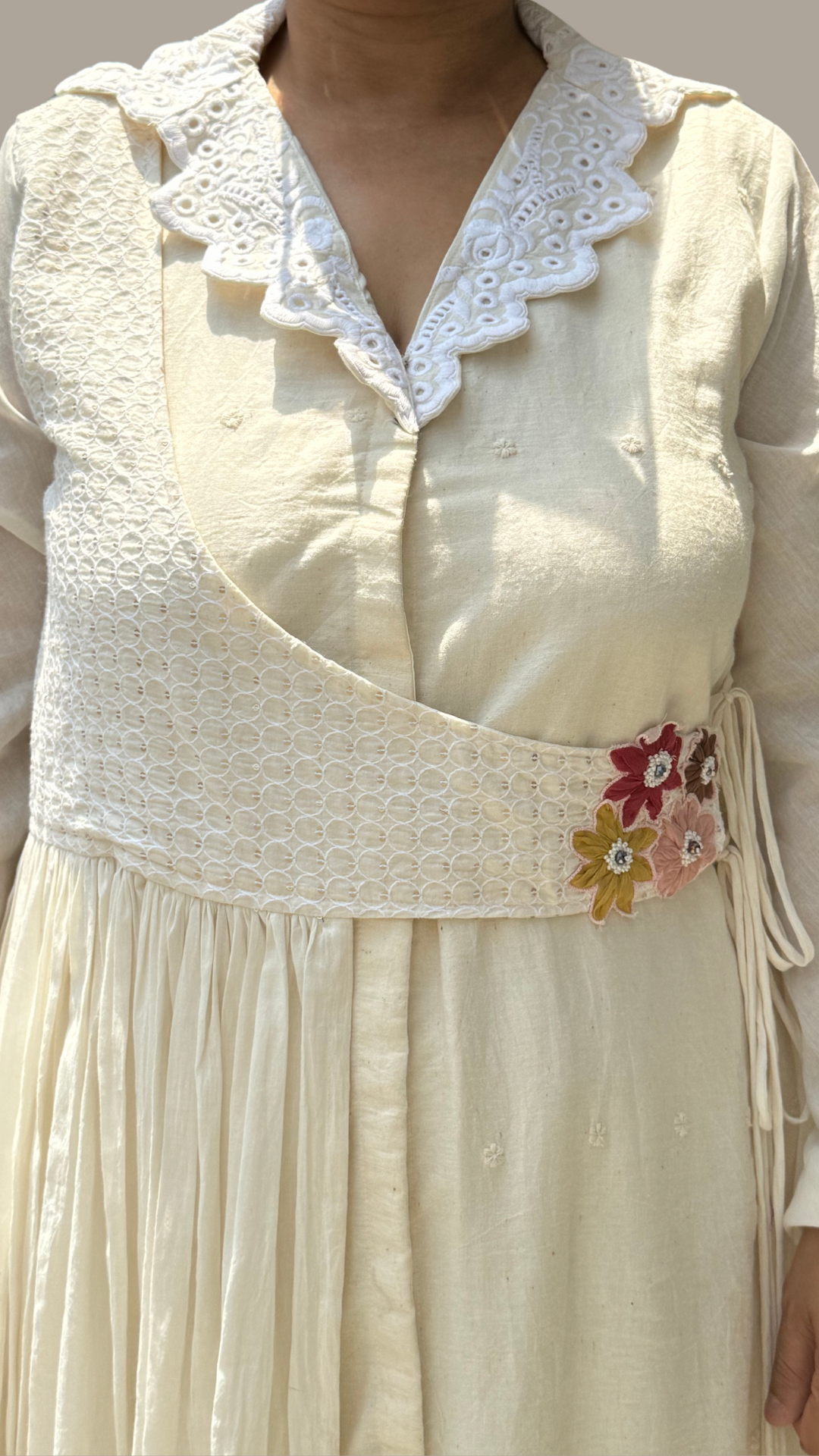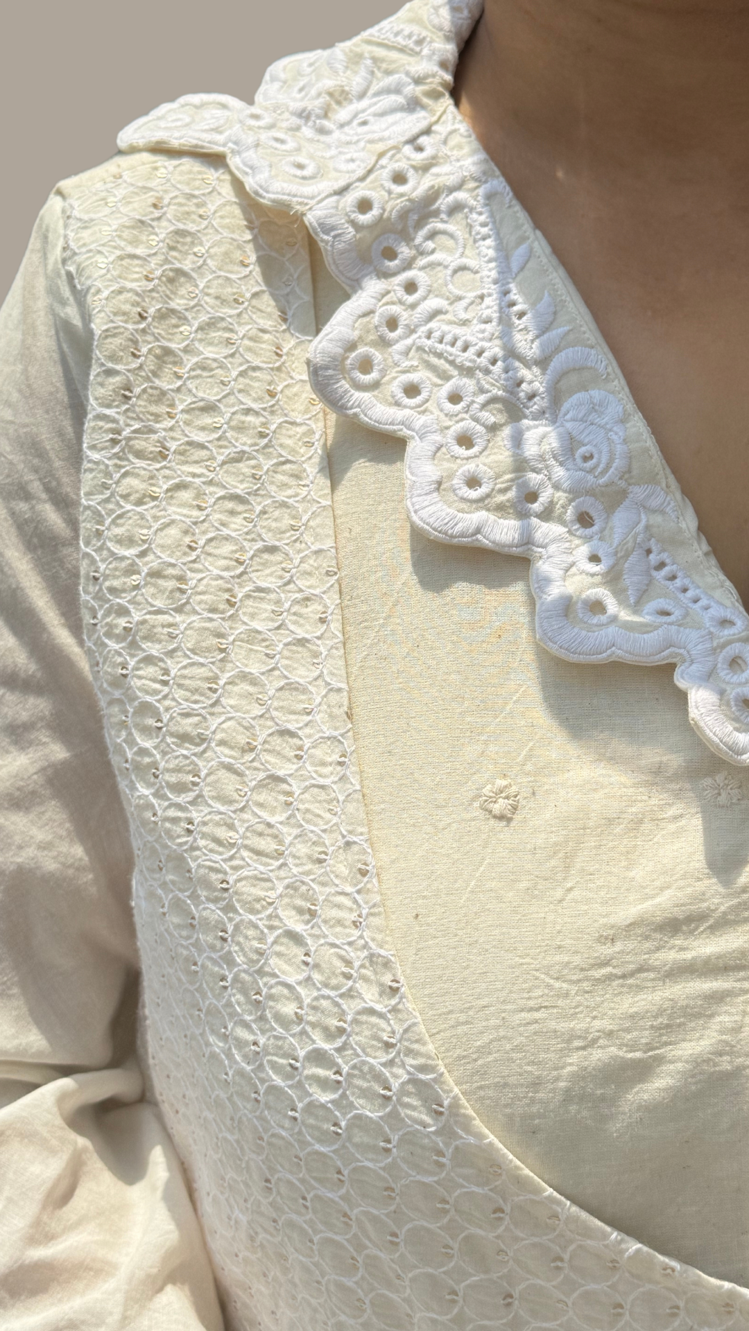 Cream Crochet Embroidered Co-ord Set
