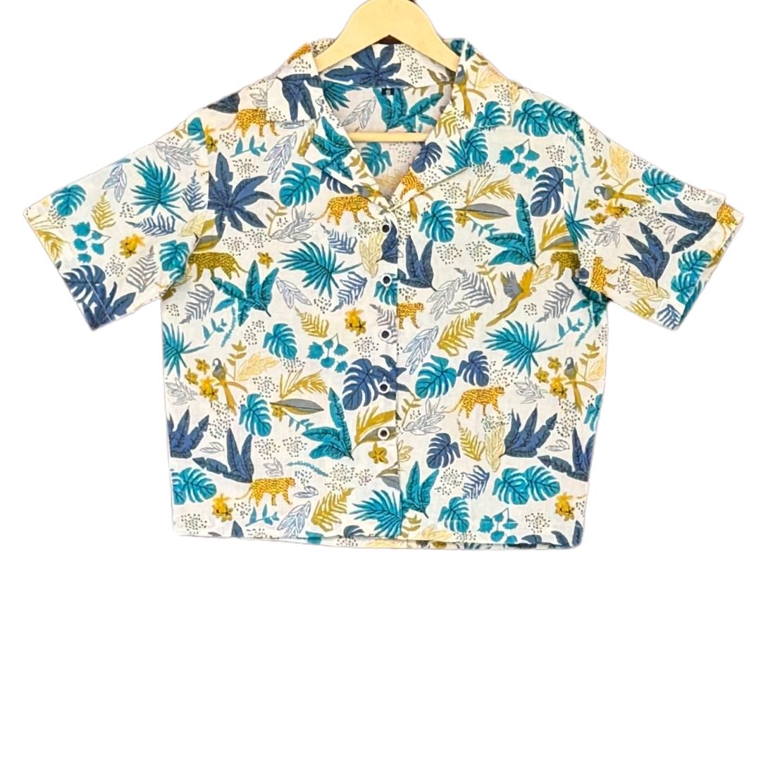 In the realm of fashion, where imagination paints the canvas of style, behold the captivating allure of the cream elephant print shirt. Pair it with denim jeans for a casual look or trouser while going to office.