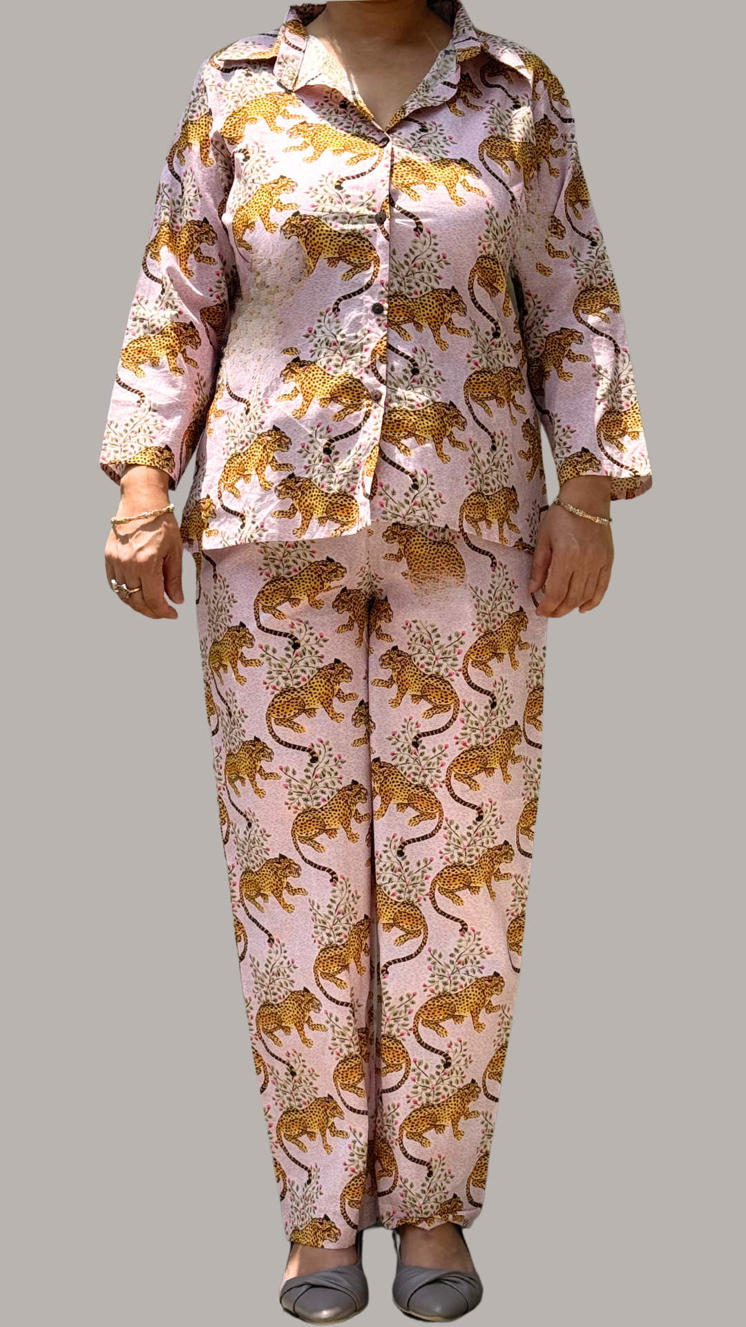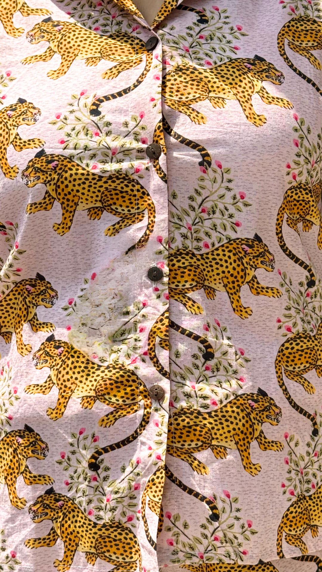 Unleash your wild side with this captivating leopard print coord set. Embodying untamed elegance, each piece is adorned with the intricate spots of a majestic predator, infusing your ensemble with a fierce yet sophisticated allure. Let the bold contrast of the spotted pattern against a backdrop of rich earth tones ignite your sense of adventure, as you prowl the urban jungle with confidence and style. Whether paired with sleek heels for a night out or dressed down with edgy boots for a casual chic look, this ensemble is sure to make a statement wherever you roam