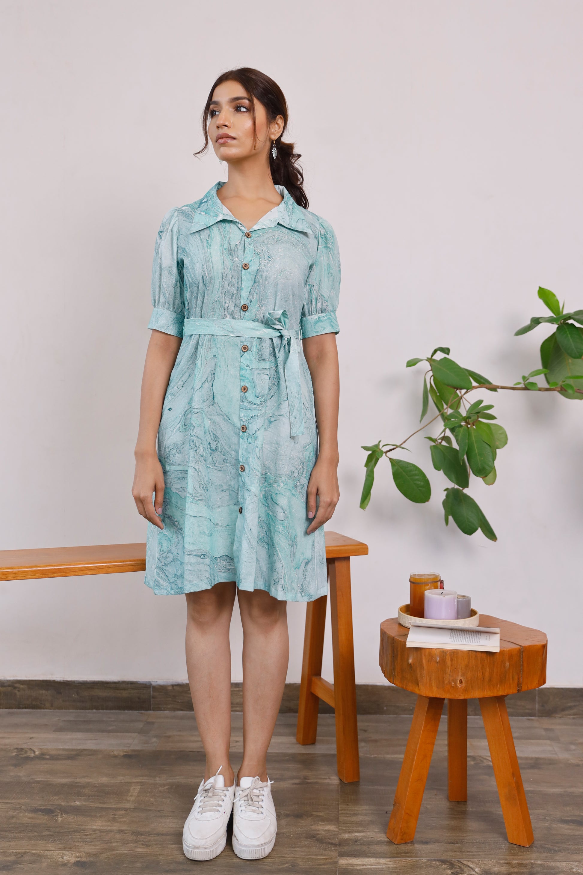 Immerse yourself in a whirlwind of chromatic elegance with our Multicolour Marbleized Majesty Dress. Each brushstroke of vibrant hues on the marble print creates a mesmerizing kaleidoscope of color, echoing the dynamic energy of a modern metropolis. The flowing silhouette of the dress exudes grace and sophistication, while the intricate marbling pattern adds a touch of avant-garde allure. Whether you're gracing the city streets or commanding attention at a soirée, this dress is your canvas for expressing bold individuality and sartorial flair. Embrace the fusion of art and fashion as you step into the spotlight with unparalleled confidence and style