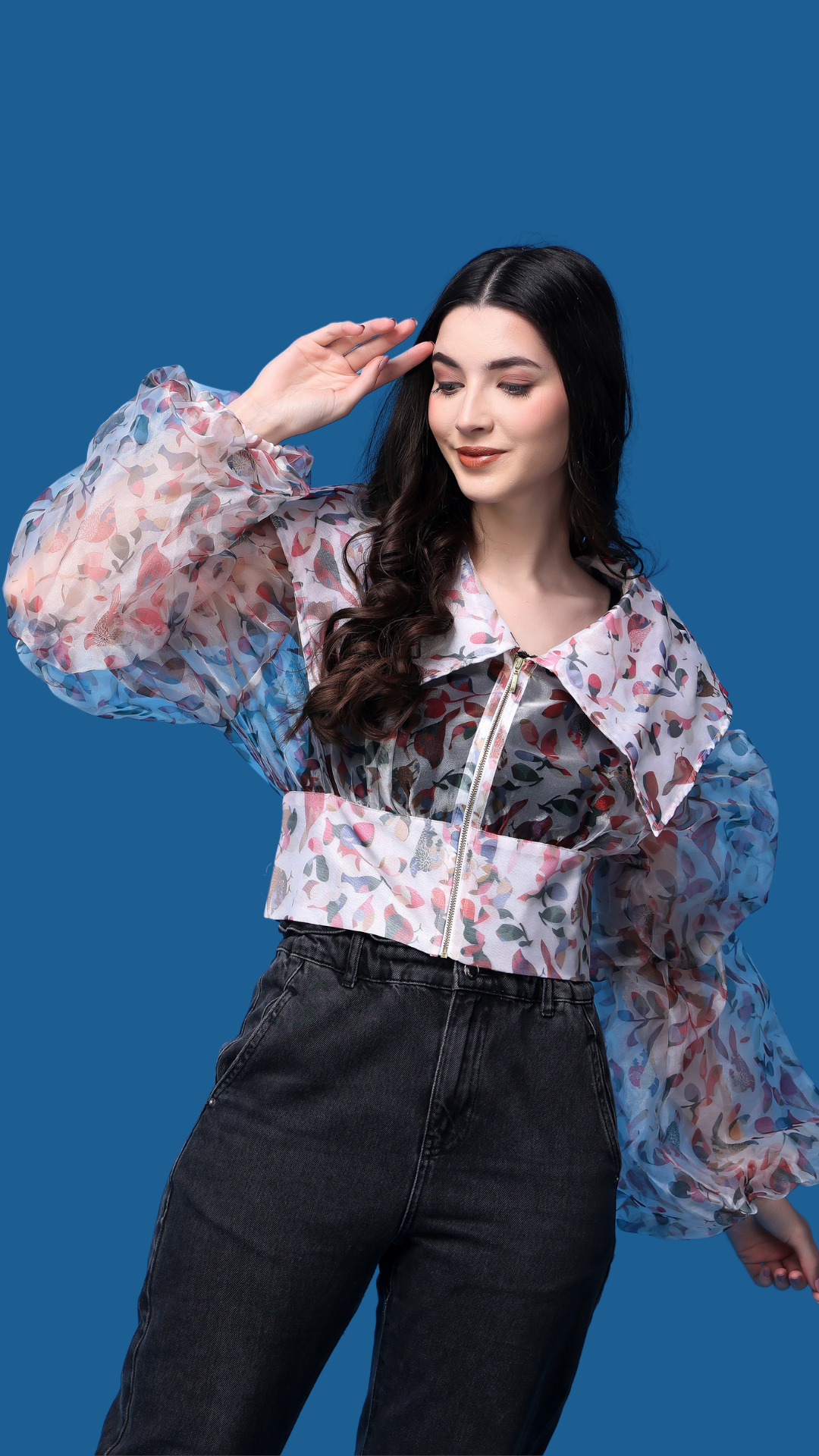 Step into a world of ethereal elegance with our organza puffed sleeves top. Like whispers of clouds against the sky, these billowing sleeves add a touch of dreamy sophistication to any ensemble. With a hint of romance in every fold, let your style take flight on a breeze of sheer beauty.Indulge in the poetry of spring with our floral print organza puffed sleeves top. Each petal, a stroke of artistry, delicately dances across the fabric, evoking the essence of a blooming garden. With sleeves that billow like whispers of a gentle breeze, this top invites you to immerse yourself in a world of botanical beauty. Let your style blossom with grace and charm, a tribute to the splendor of nature."