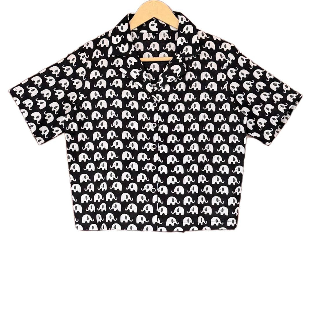 In the realm of fashion, where imagination paints the canvas of style, behold the captivating allure of the cream elephant print shirt. Pair it with denim jeans for a casual look or trouser while going to office.